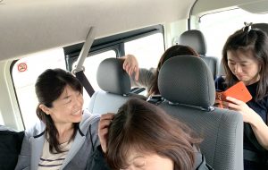 ただ今車内にはカンボジアのみんなのクメール語の賛美が流れています。 ブログチェックをしているいづみさん。