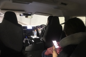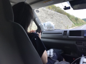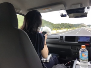 引き続き藤田さんが運転してくださいます。香田さんは、ちょっと目が充血気味とのこと。いやされますように。