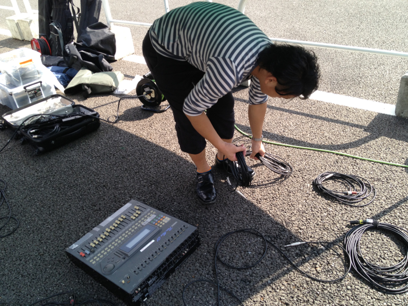 車から機材を出します