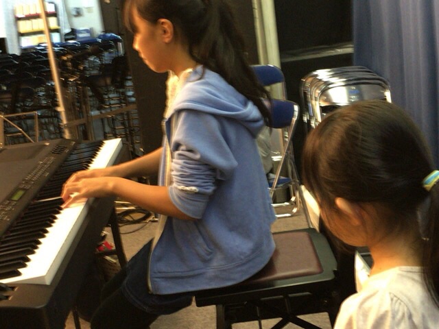 次の出西賛美ちゃんと、弾きっこをしました! 二人共、真剣です。 Gifts Kayano