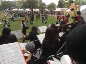 チラシが、あっという間になくなりました。 昨日の公園の中の別の場所で、ライブをしました。