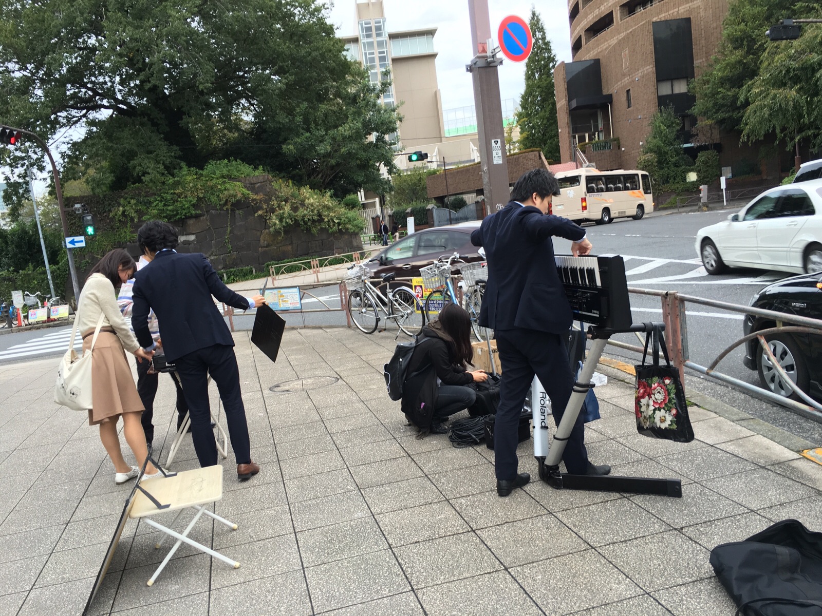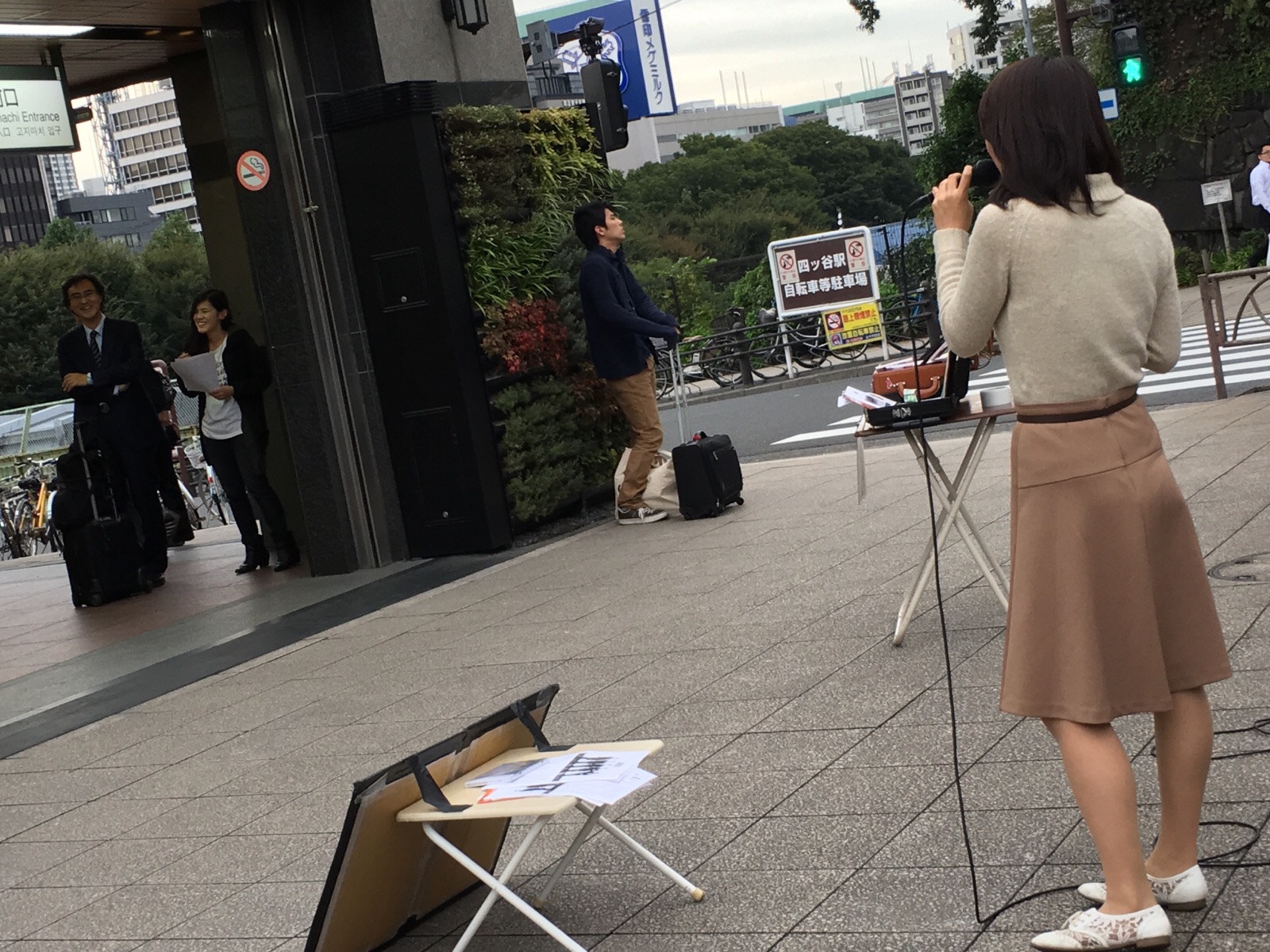 中野の公園でライブしてます。 多くの人々がチラシを受けてくれました。