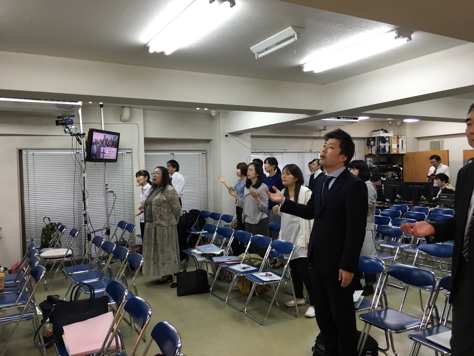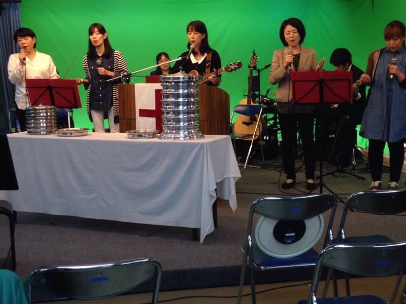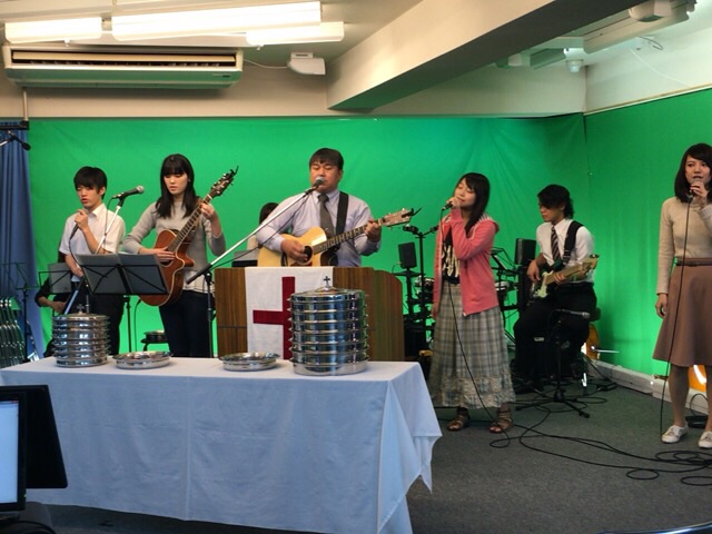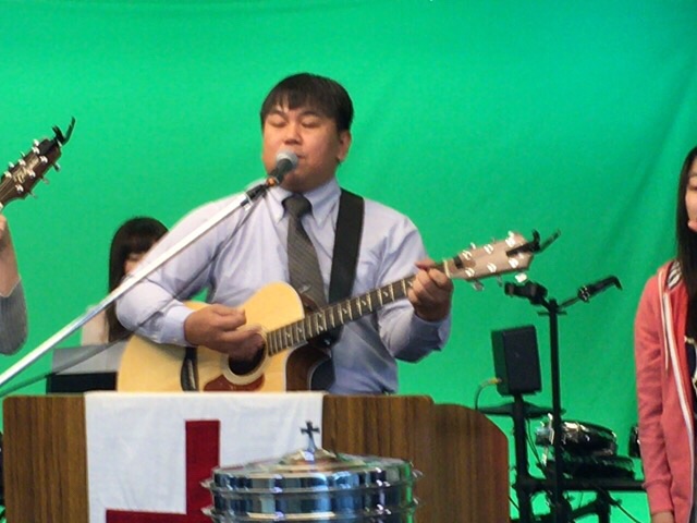 東京アンテオケ教会の牧師である秋元さんが導かれる賛美の時です。