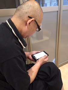 主人も携帯を見ています^ – ^
