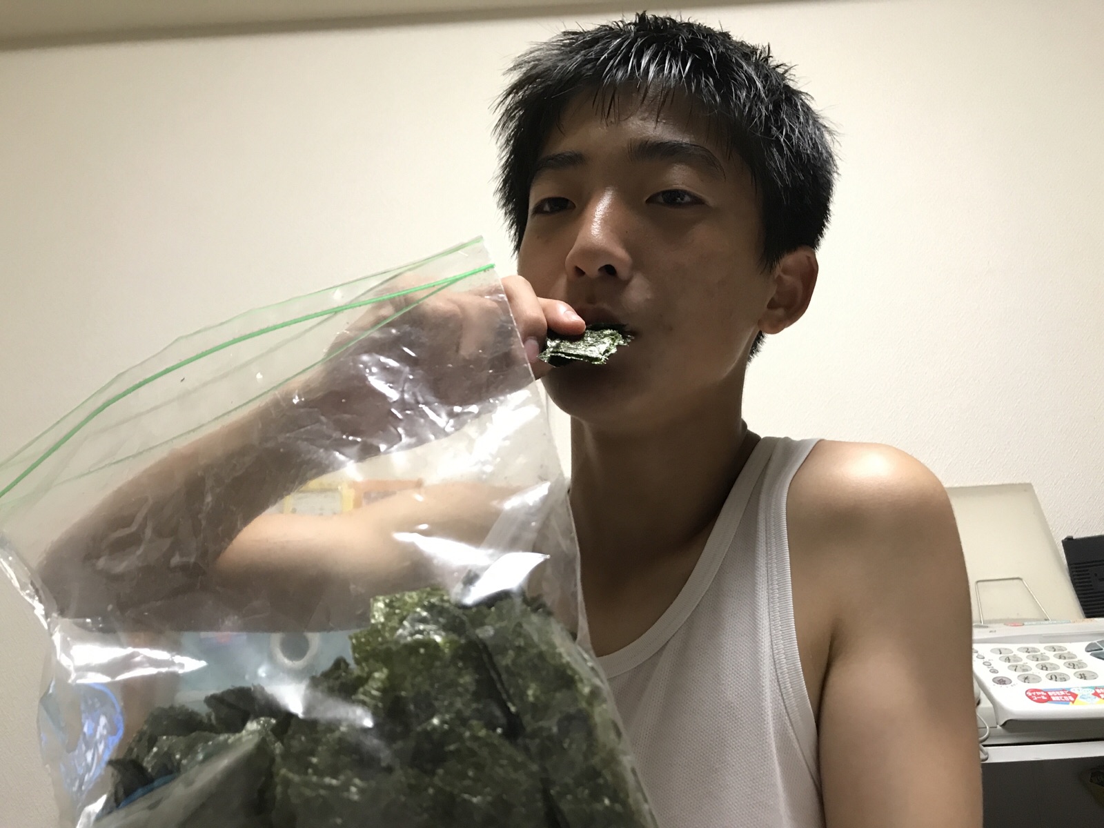 海苔を食べてます。パリパリ、パリパリ、、、いつ勉強に移行するのかなぁ〜 東フィラデルフィヤ シオン