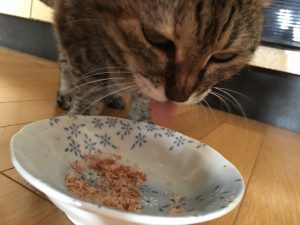 リンダちゃん、かつお節をおいしそぉに食べて