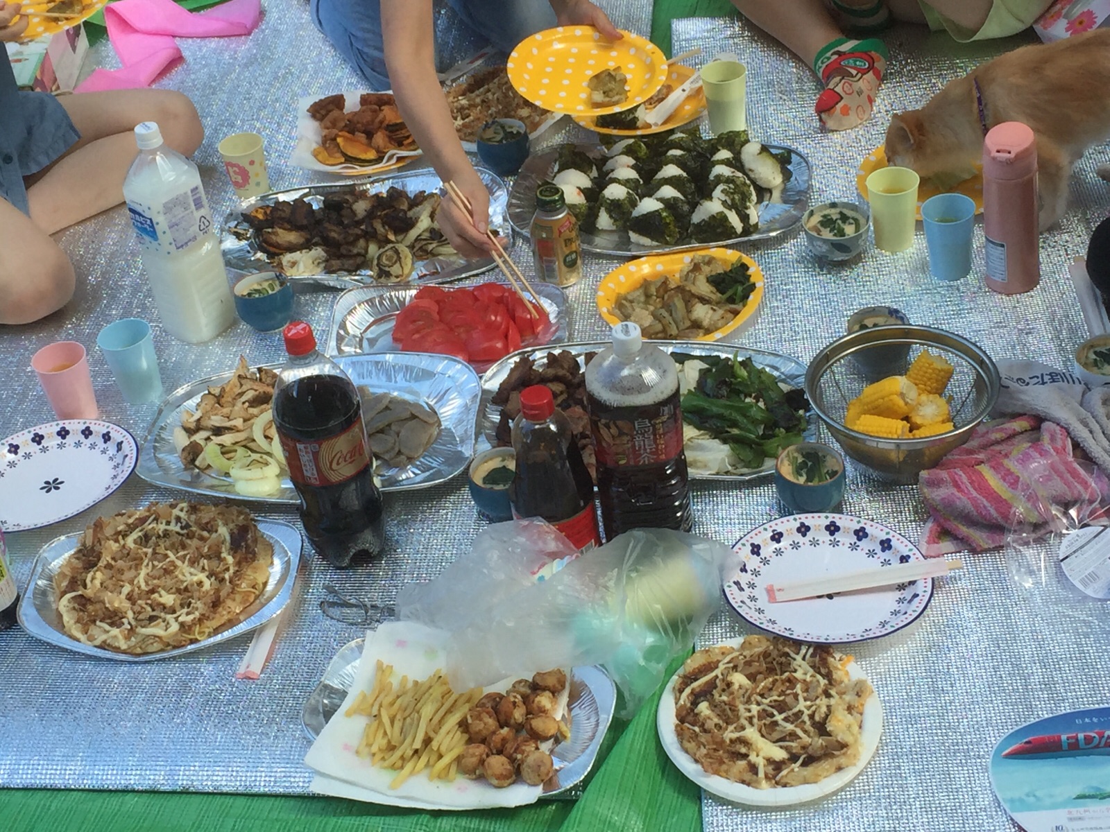バーベキュー、おむすび、から揚げ、、、みんな、美味しい笑顔で❣️(((o(*゚▽゚*)o)))