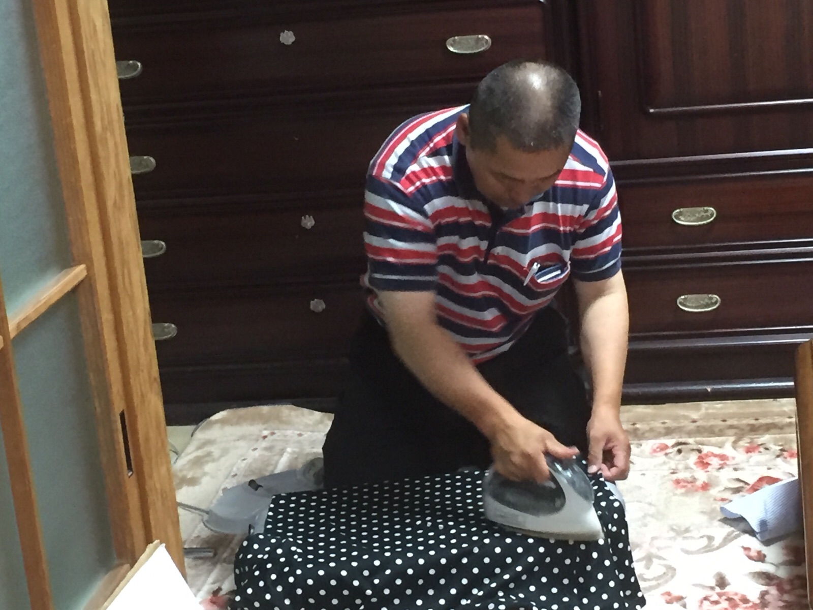 イスラエル岡田さん、自分でアイロンかけていま〜す。v(^_^v)♪