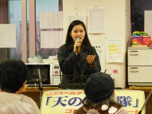 コンサートが終わって、片づけていると、一人のおばあちゃんが来られて、帰ったらだめと・・・「また、来させて頂きます。」と言うと「じゃぁ、いいよ。」と笑顔満面になられました。今回は、「Miracle」「GRACE」と「Jゴスペルチーム・天の賛美隊」が、コンサートに行かせて頂きました。祝福して下さった、神さまに感謝します。北九州 天の喜びの器ハンナ