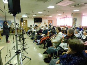 昨日、八幡東区の「特別養護老人ホーム誠光園」でコンサートを久し振りに、させて頂きました。約、50名の入居者の方、スタッフの方、ご家族も熱心に聞いて下さいました。最高齢は105歳。95歳の方々はとても、お元気で「まだ、聞きたかった」と言って下さいました。