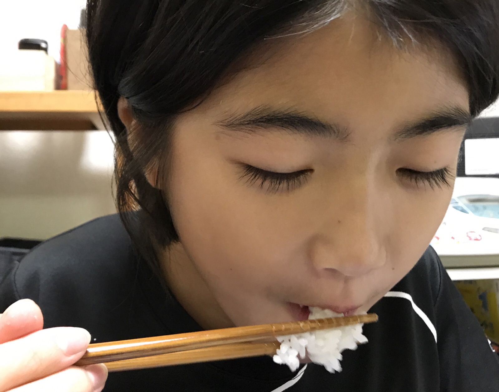 給食でお代わりしなかったのでお腹すいたそうです。大好きな筋子で満足気です。