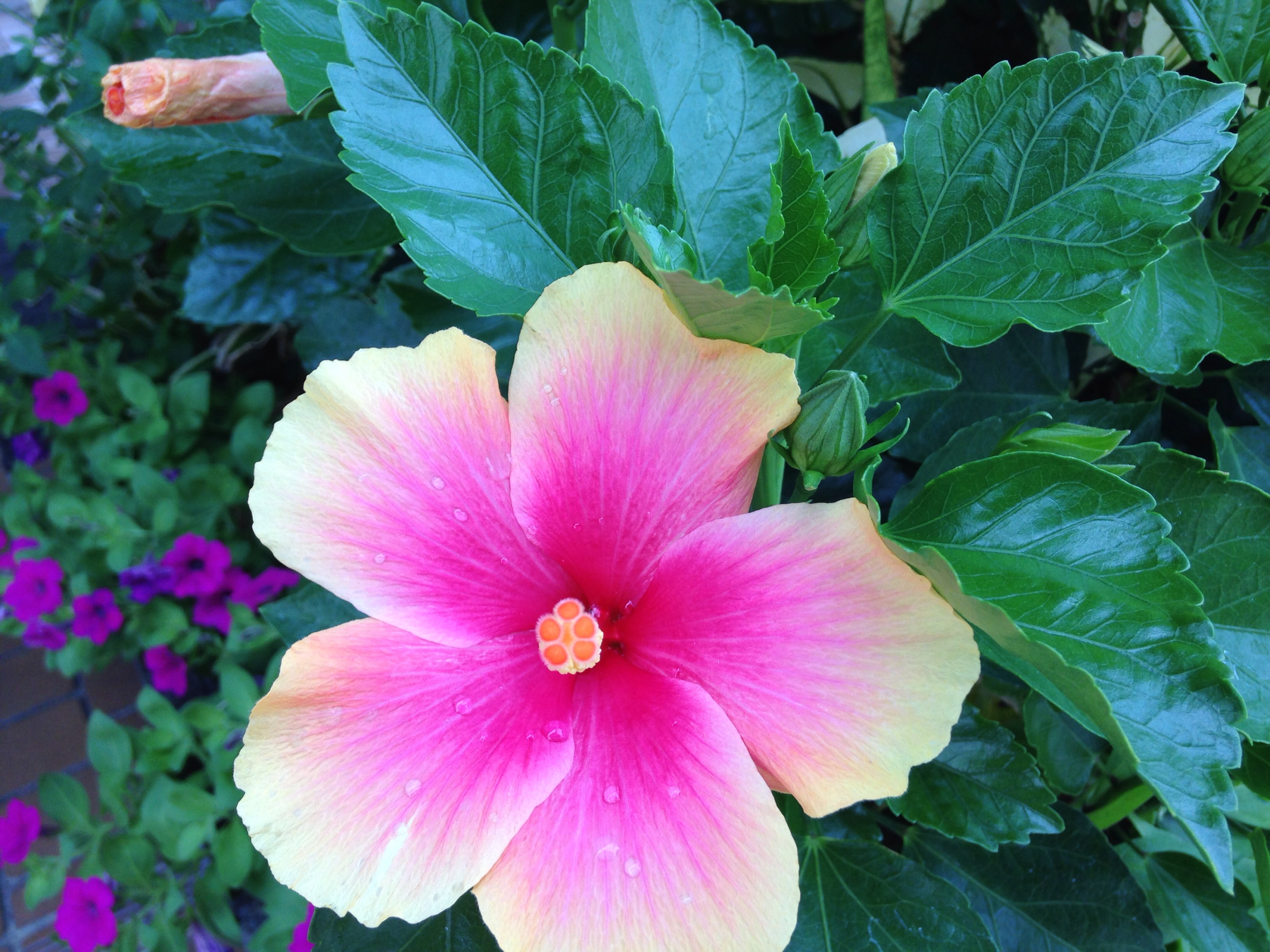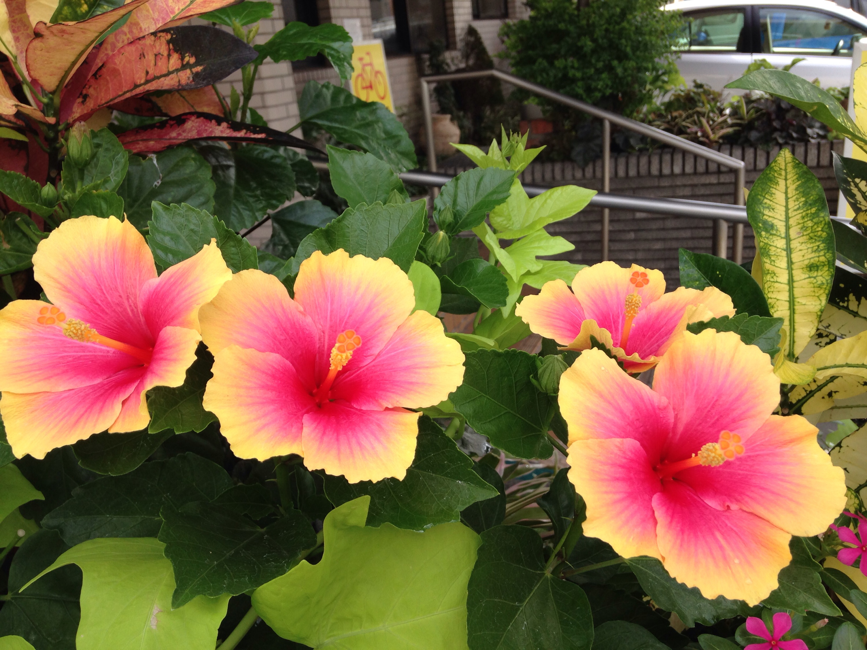 毎朝 会社に行く道に咲いているハイビスカスです。🌺