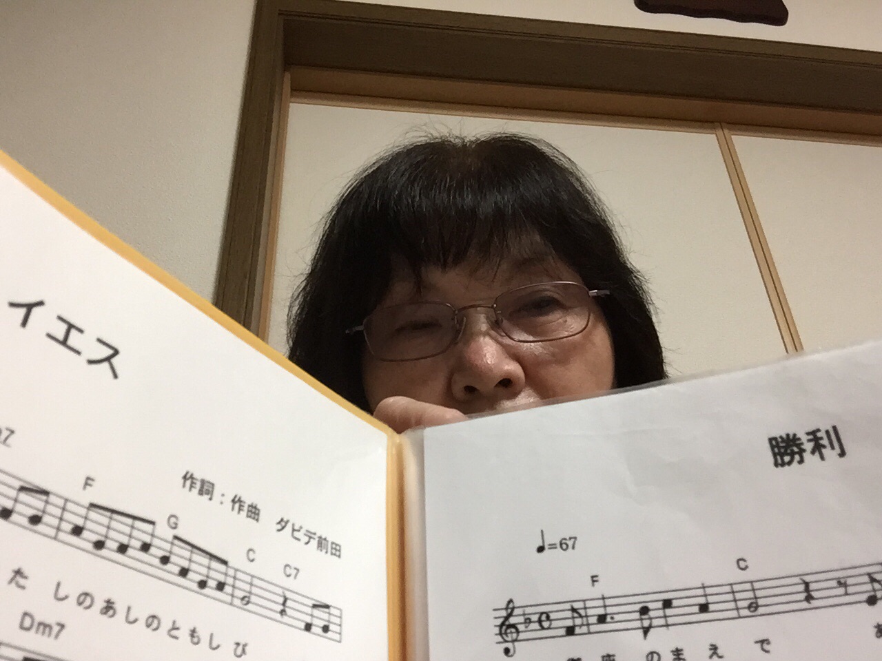 火曜礼拝でも、3集を♫ 歌詞を凝視して熱心に?歌ってます◡̈⃝