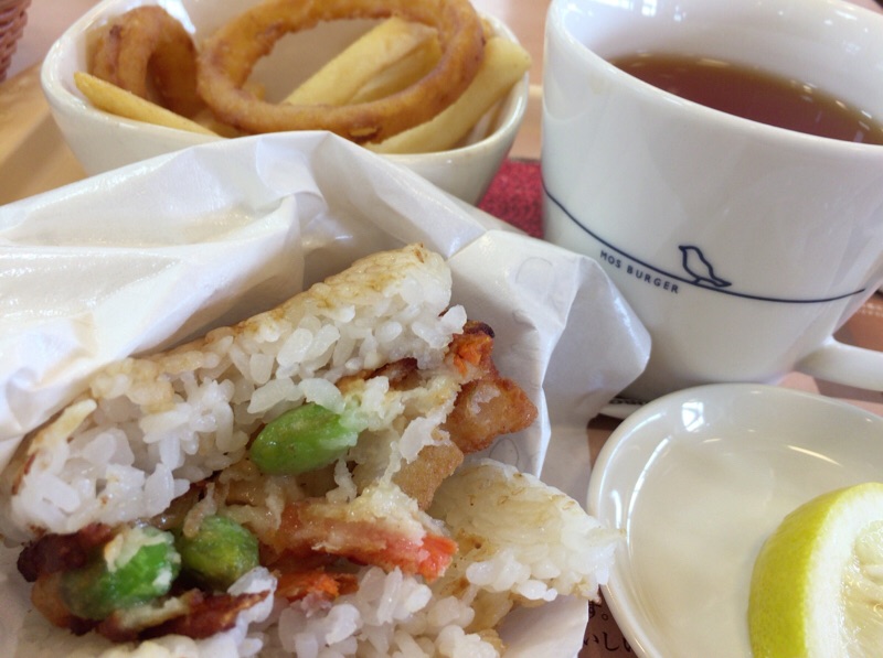 今日もお気に入りのかき揚げライスバーガーセットでした〜(^_^)☆