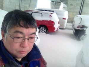 写真は、JRの駐車場の除雪作業にかりだされた北野牧師。