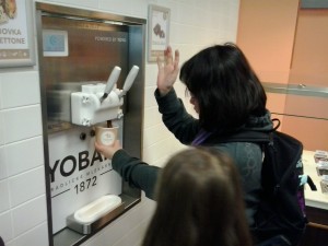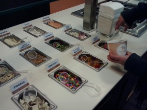 車でちょっと走ったところにあるショッピングセンター。新しくできたセルフサービスのヨーグルトでできたアイスクリームバー。なんでもこの会社はヨーロッパで初めてフルーツヨーグルトを販売開始した会社だとか。トッピングも自由に選べて楽しいよ!しかし、この後落とし穴が。。。このアイスカップの値段は重量(グラム単位)だって!(>.<;)