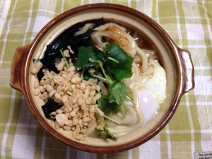朝から鍋焼きうどんです! 寒いので!と、言うより、 賞味期限の関係で!