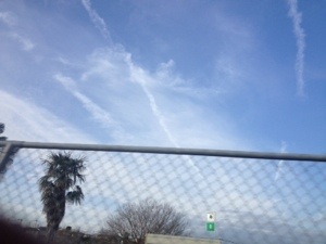 一点から、スジ状に伸びた雲が…! よく地震雲と言われますが、根拠はないそうです。(アネ談)