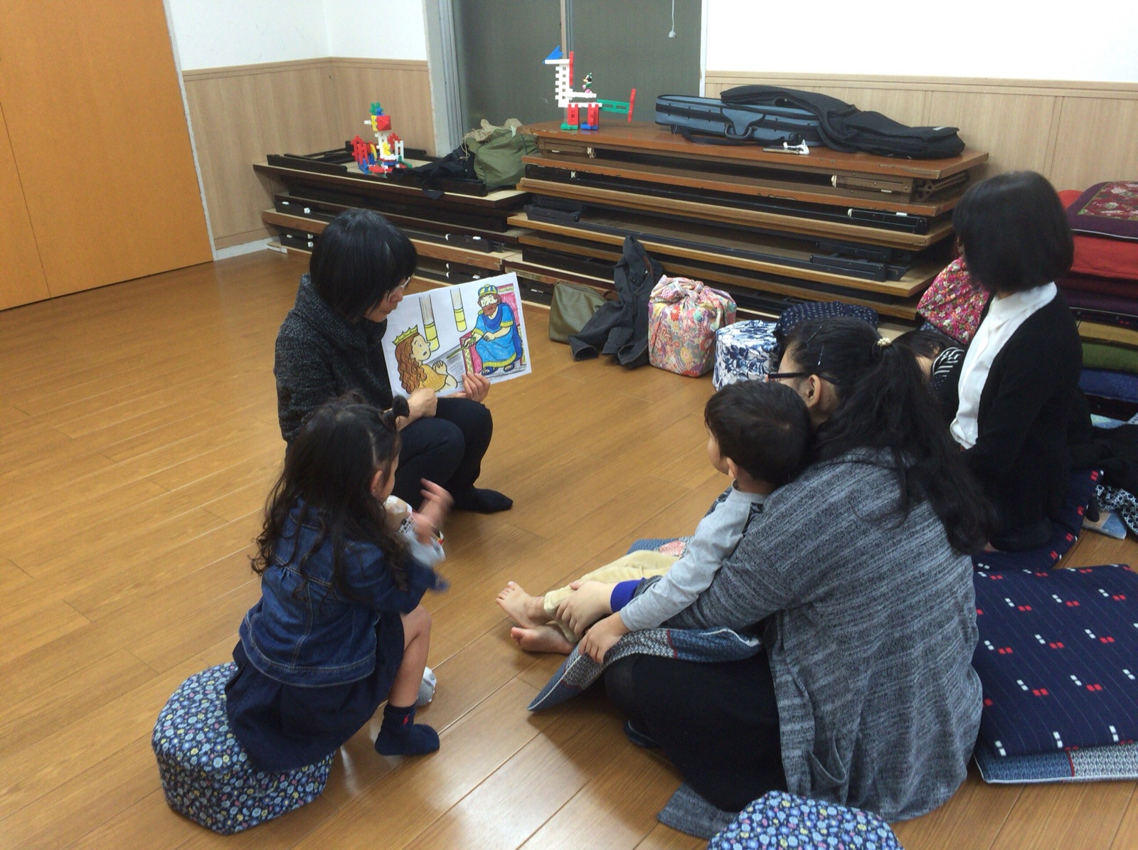 幼児クラスでは、吉田さんの紙芝居で聖書のお話です。 今日は、四日市からミーちゃんも来ています。 J.miya