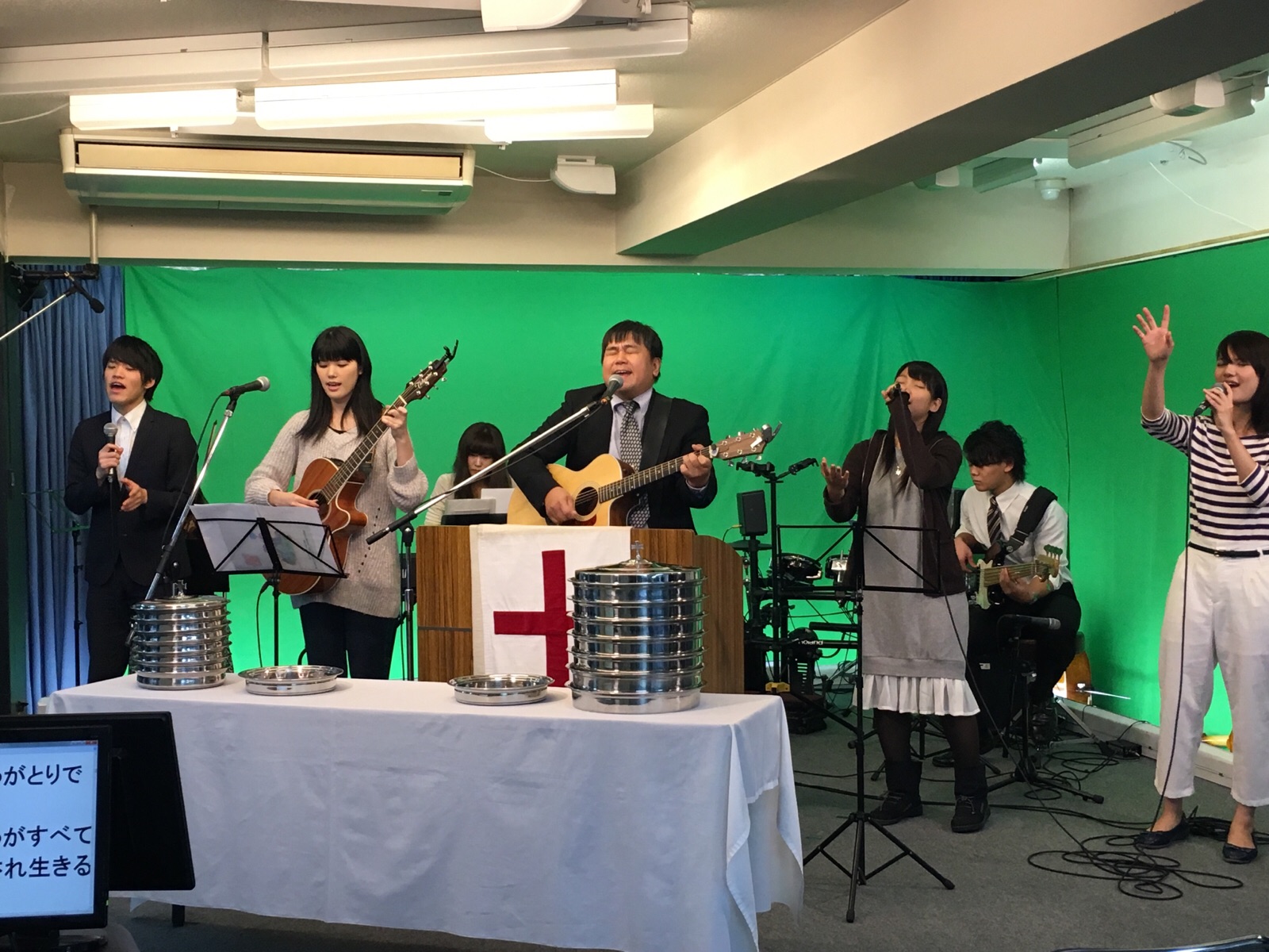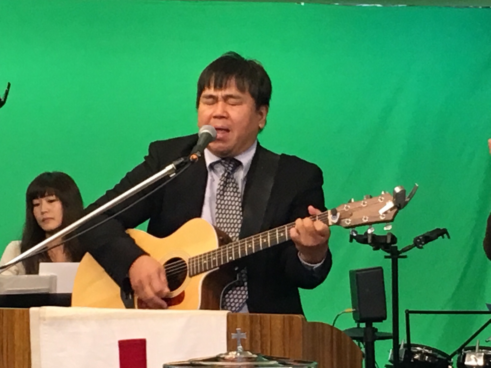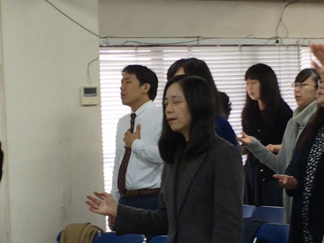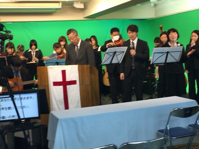 東京アンテオケ教会の牧師である秋元さんが導かれる賛美の時です。