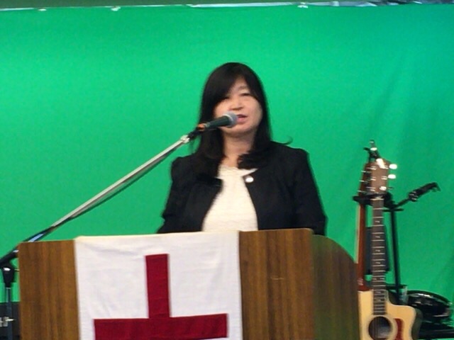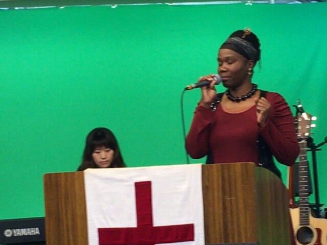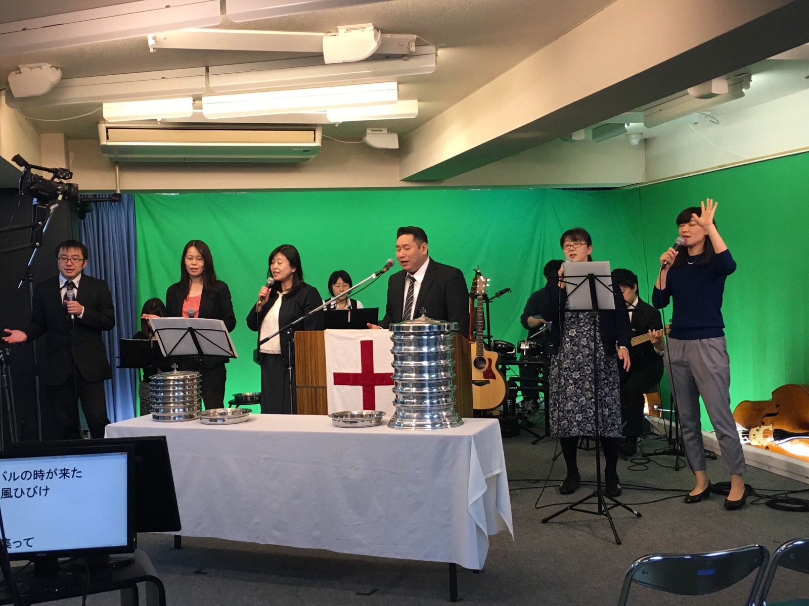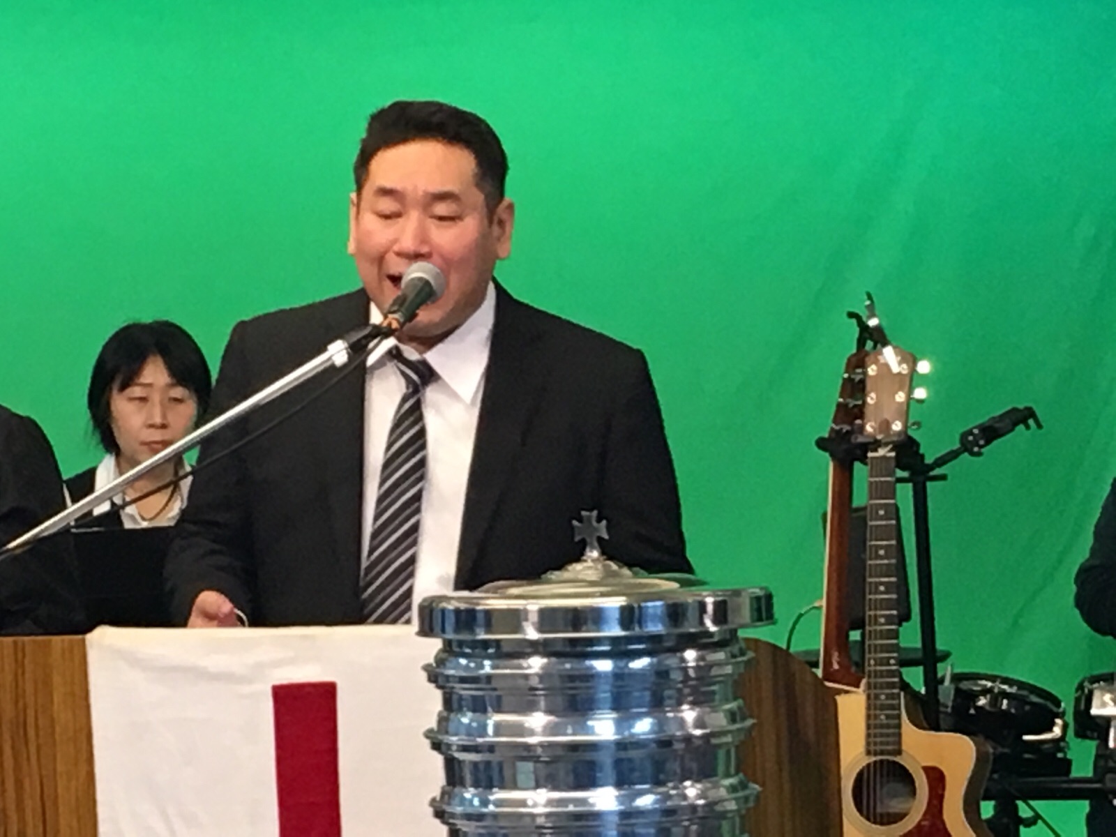 月曜第一礼拝がスタートしました。 賛美リーダーは真境名さんです。
