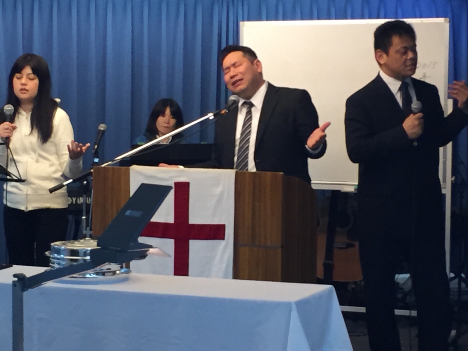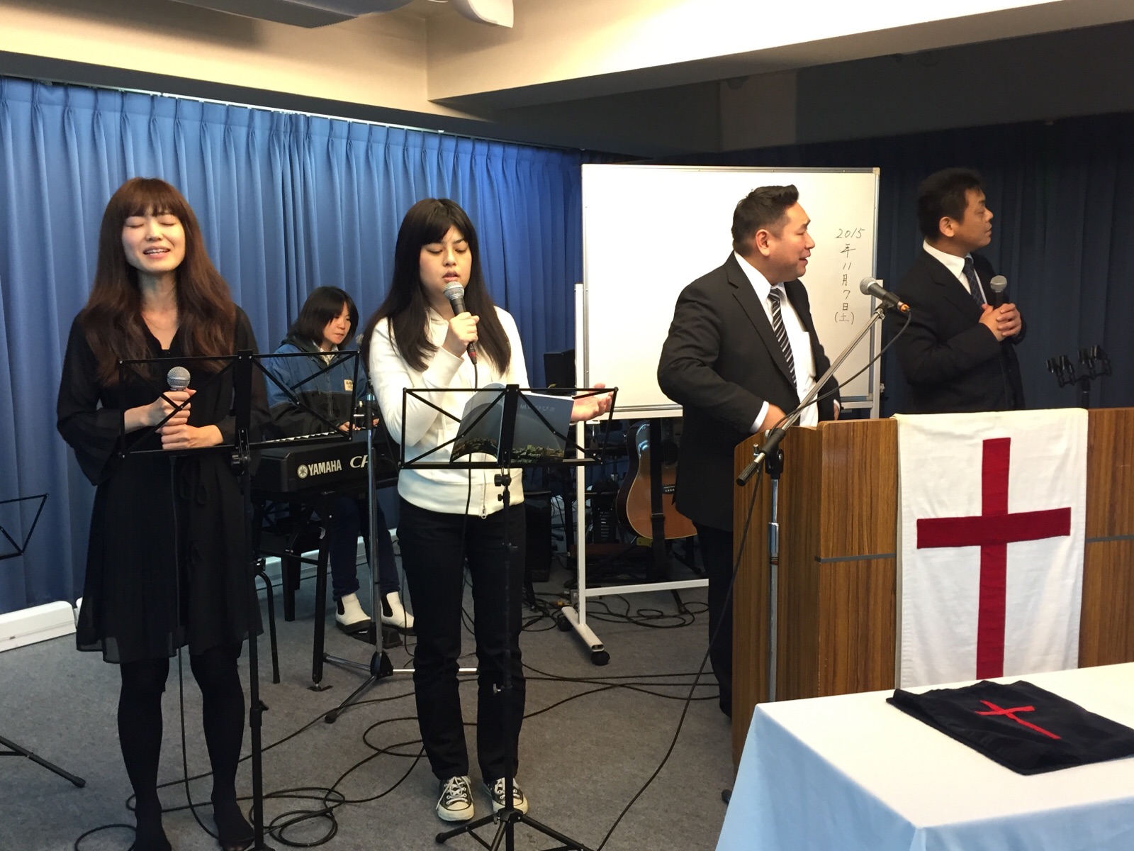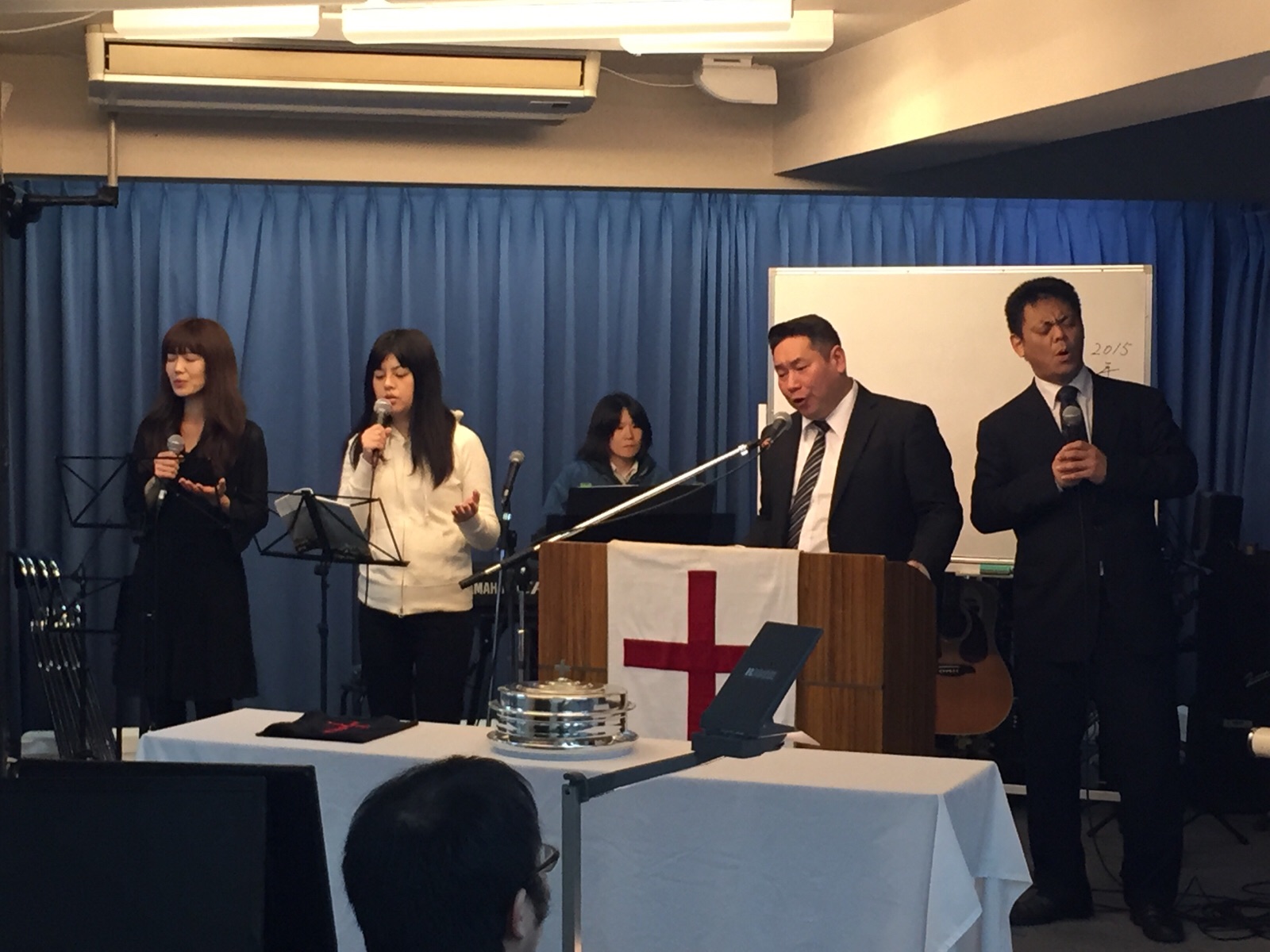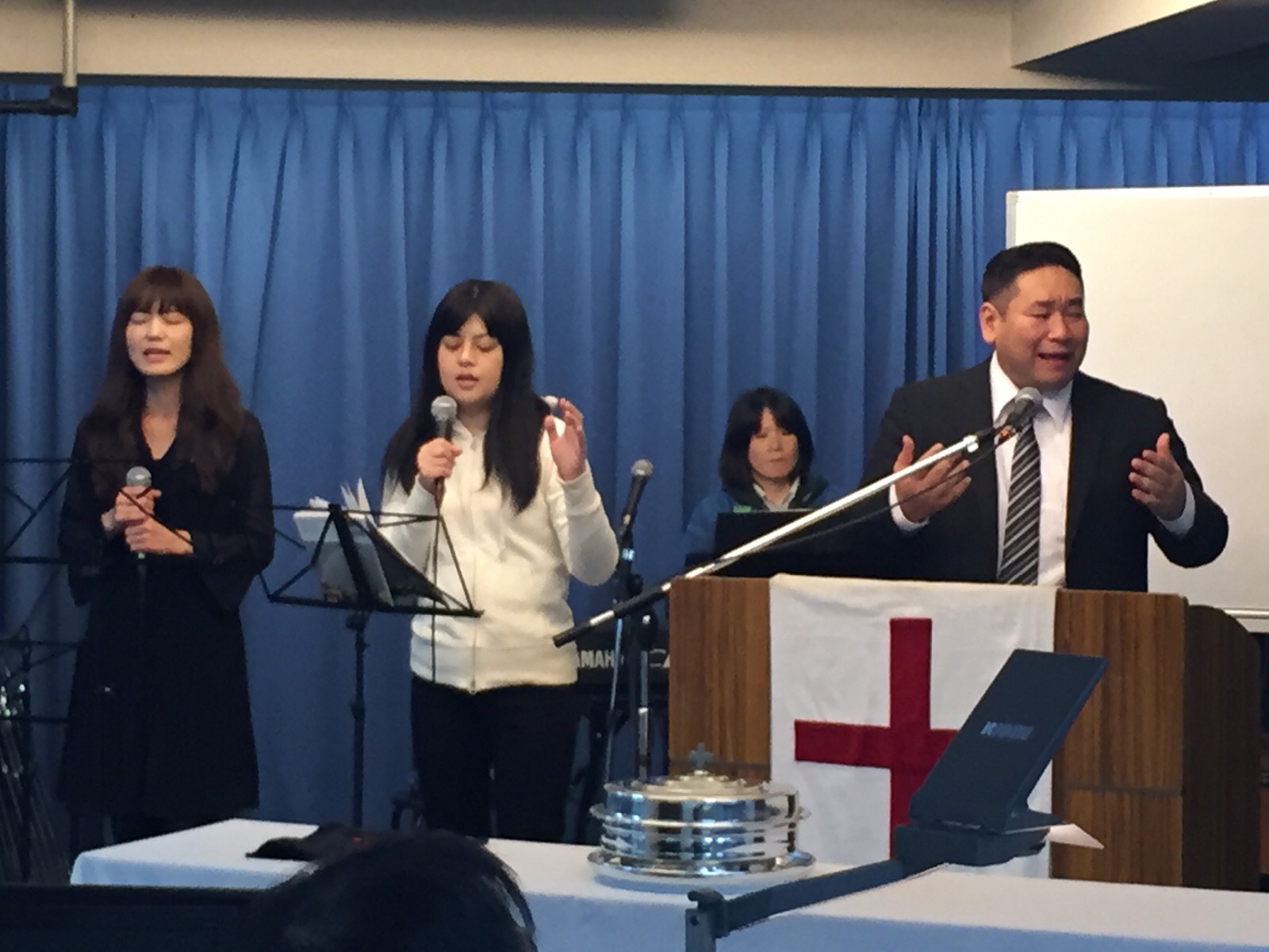 牧師賛美です。ペテロ真境名さん賛美リードされます。エステル清水