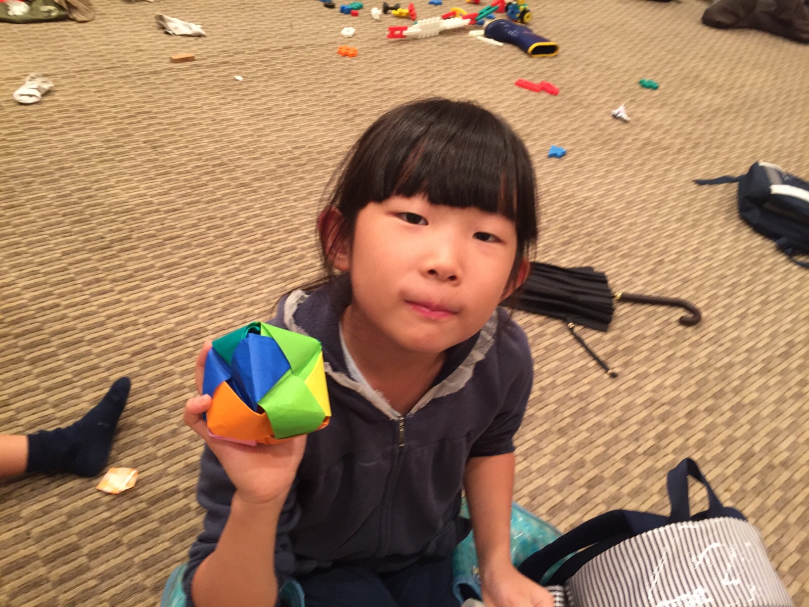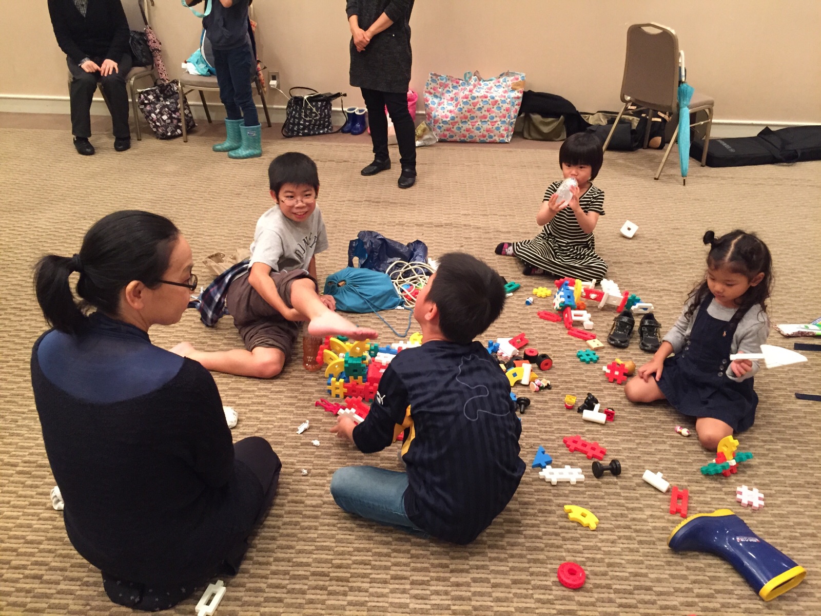 今日は子供たちみんなで輪投げゲームをします。 準備中の愛ちゃん♪ Truth Akemi