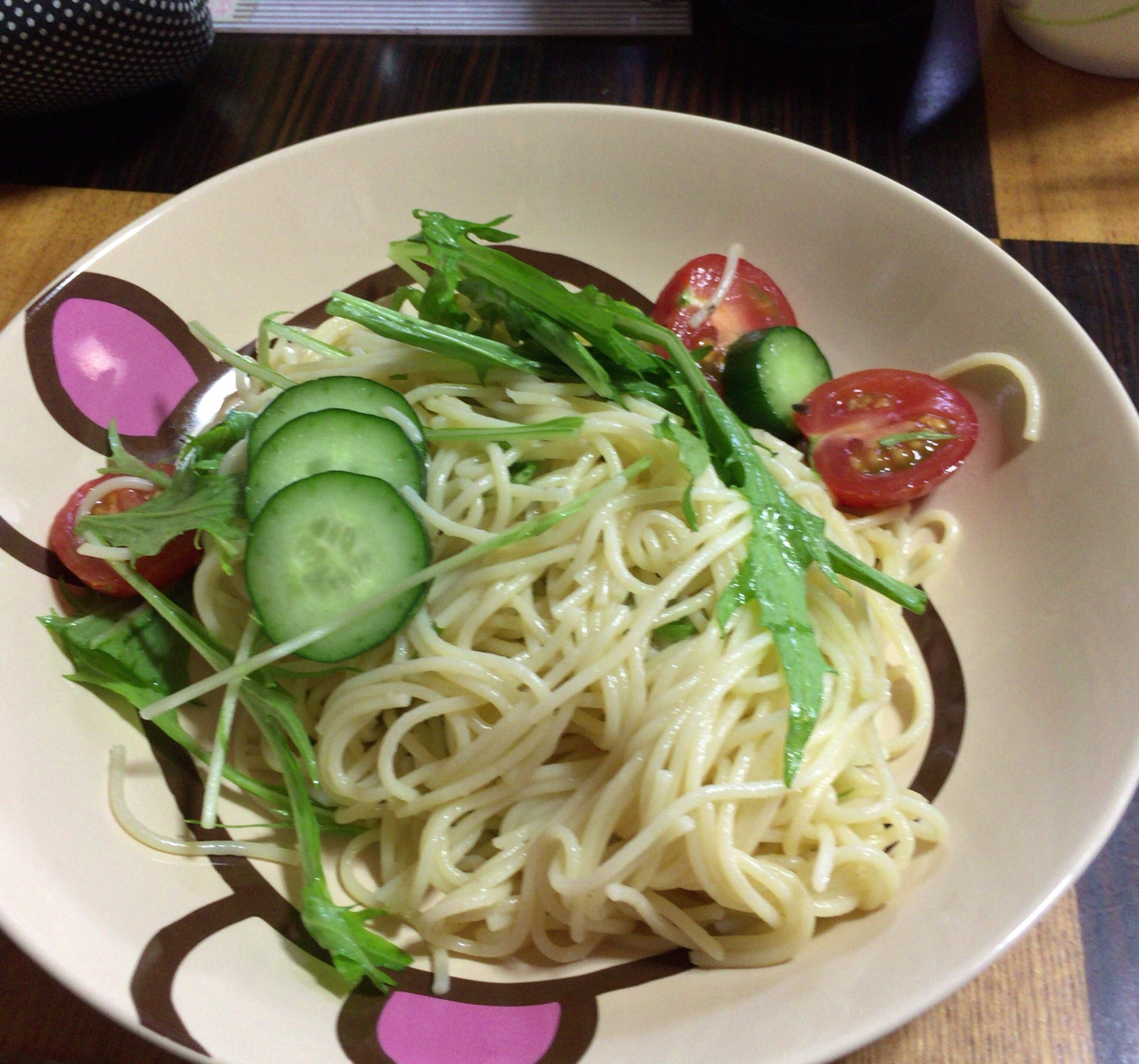 昼食は、娘が作ってくれたサラダスパゲティです。 あっさりして美味しかったです♫
