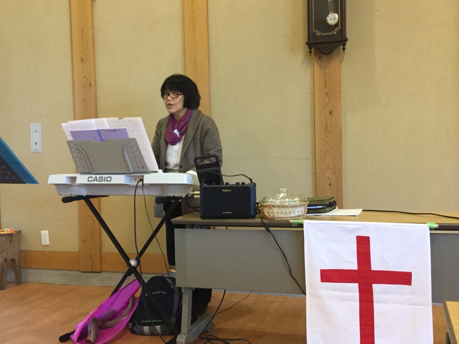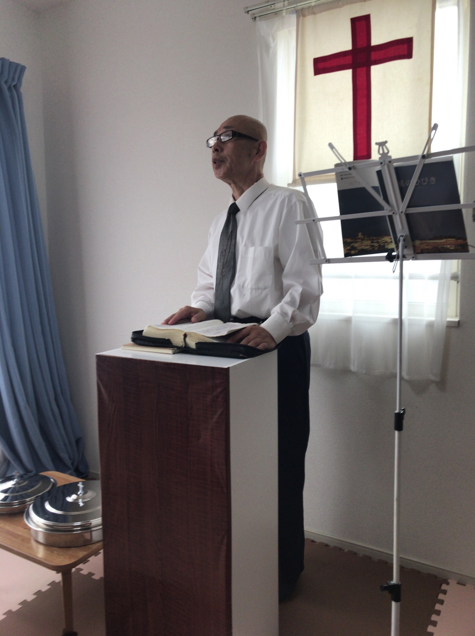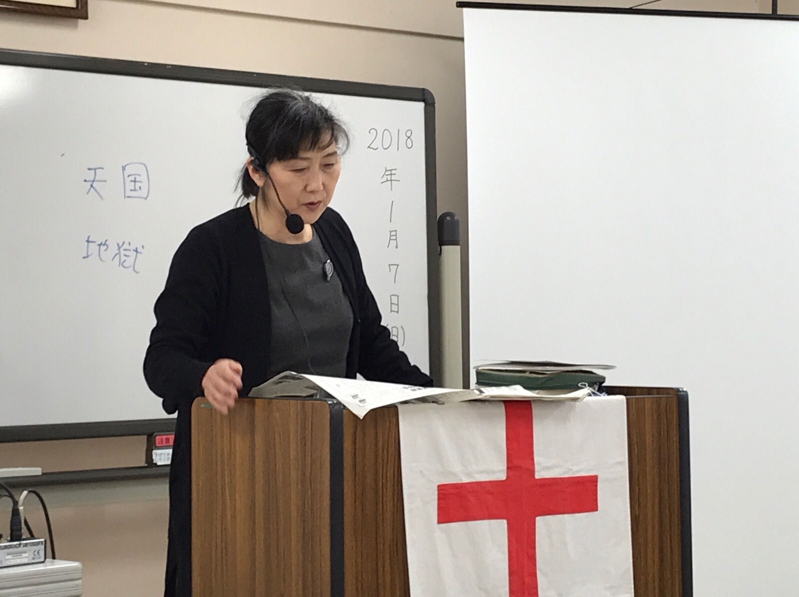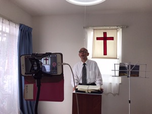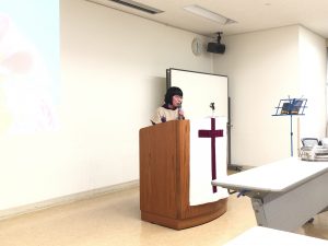 シオンの山大阪教会で第二礼拝のメッセージの時です。牧師であるエステルさんが説教奉仕されています。