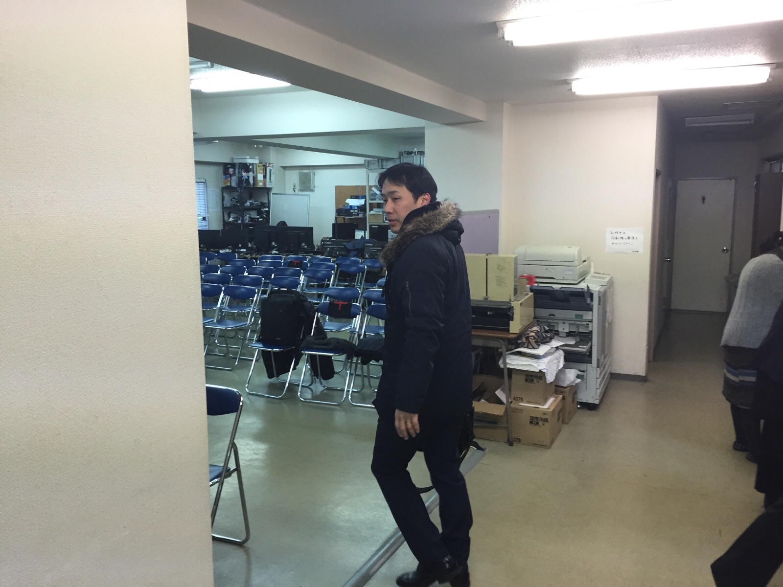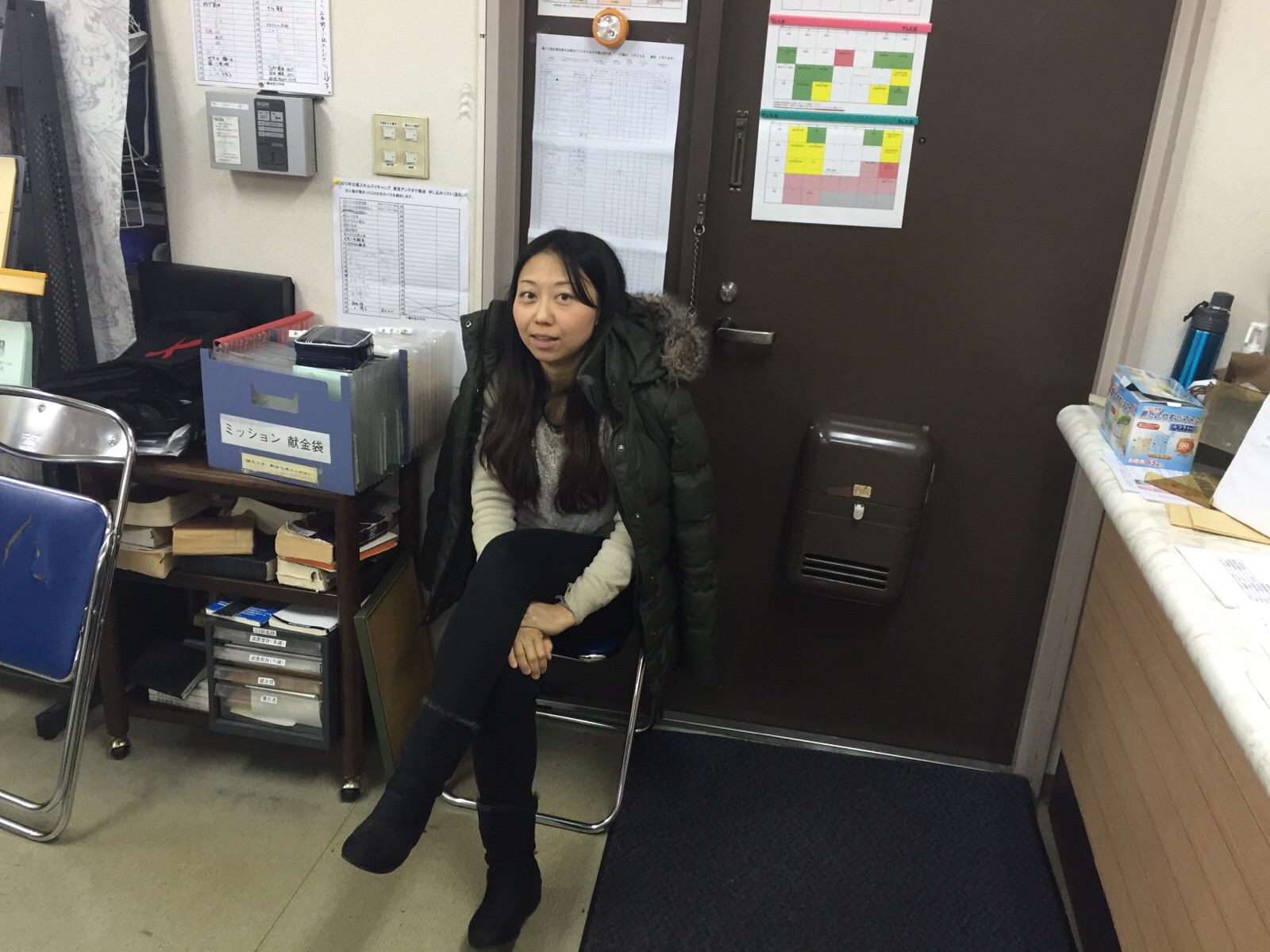 新しい人が来られたら、ご案内します。早朝礼拝アッシャーのてるみん。