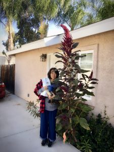 9月に玄関先に現れた草はアマランサスらしいという事で〜成長が凄いです。 ギリシャ語のアマラントス、((花が)しおれることがない)が語源だそうな。 葉も種も食べられるそうで収穫が楽しみ! LAやじま