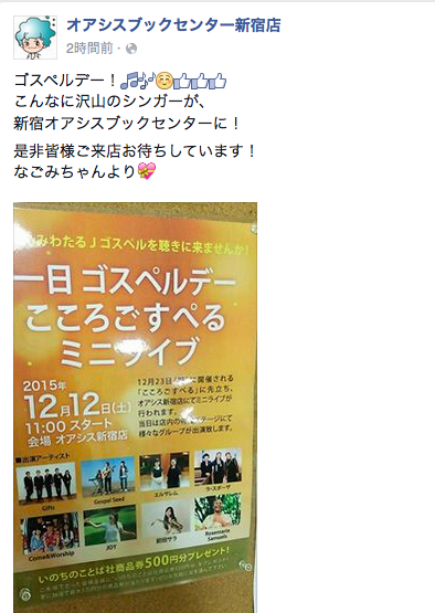 オアシスブックセンター新宿店のFacebook   2015/12月/10 [木] 11:39