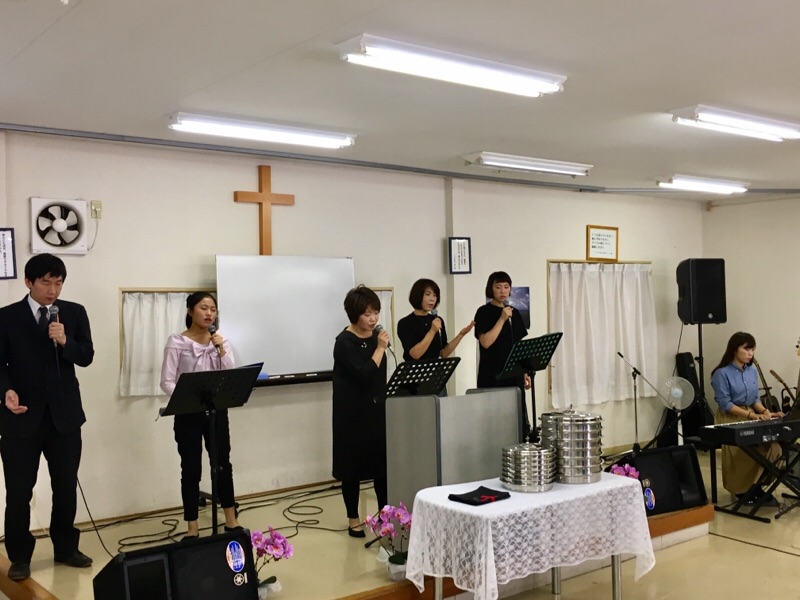 第一礼拝が始まりました!匹田さんの導きで、心から賛美を捧げています。 四日市