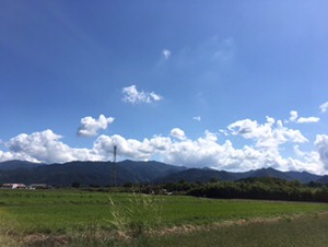 思ったより早くボランティア会場に着いてしまいました。快晴です。暑いかも。 富士フィラデルフィヤ教会 ゆか