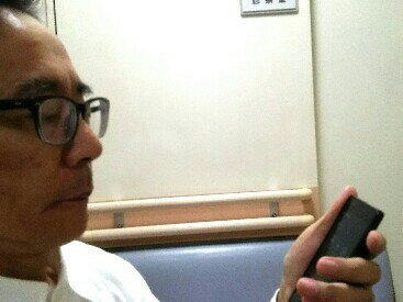 強化は夫の検診日。病院に来てます。待合でスマホを操作する夫。スマホがあるから時間が待てます。良かった。