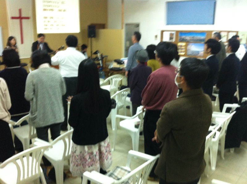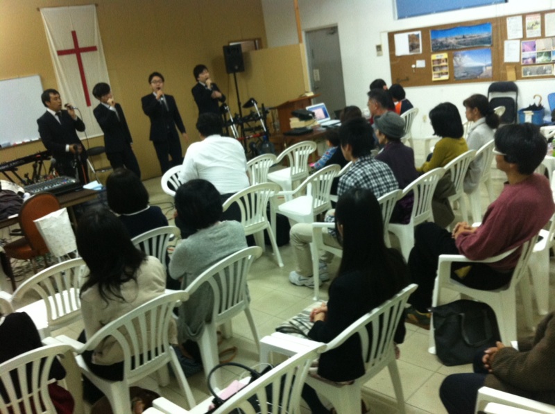 山口さんがリードで娘さんがコーラスで、会衆賛美を捧げます。 沖縄