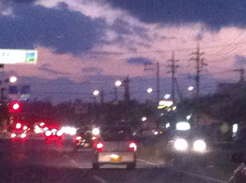すっかり暗くなりました。沖縄いのちの水の泉教会の聖会は、今晩7:00からです。 沖縄