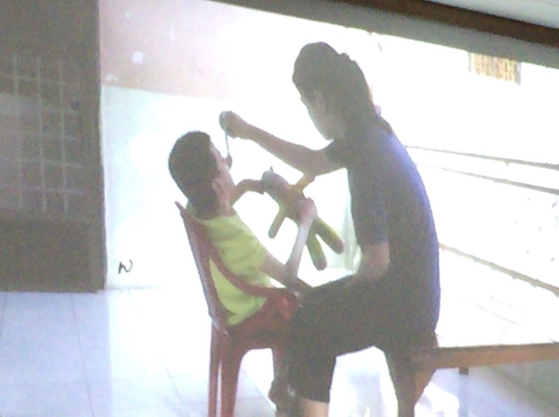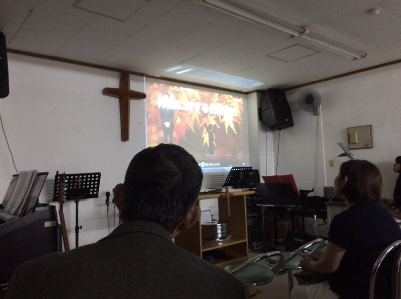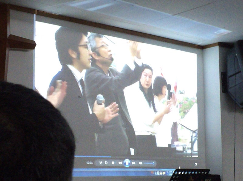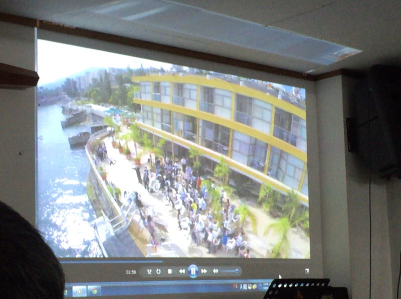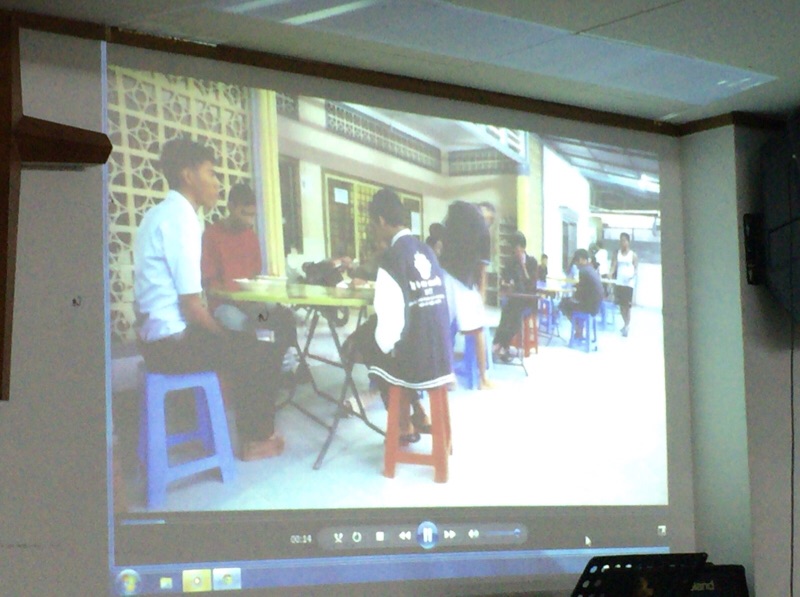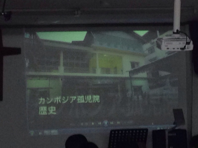 カンボジア孤児院の歴史の紹介映像を見ています。 沖縄エルサレム ♪