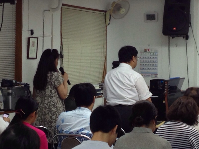 お祈りと賛美で聖会がスタートしました。 沖縄エルサレム