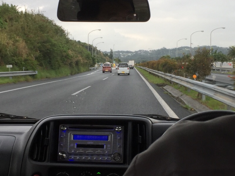 学校の始業時刻8:45を超えると結構空くのですが、そろそろ高速入口です。 沖縄エルサレム D