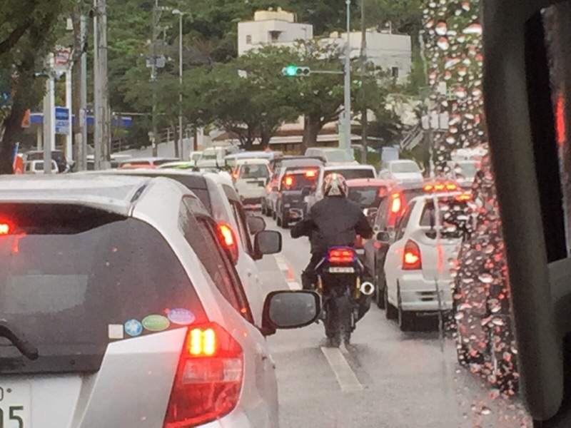 渋滞です!沖縄では雨の日は車が渋滞します。学校に送ってもらう学生が一気に増えます! 沖縄エルサレム D