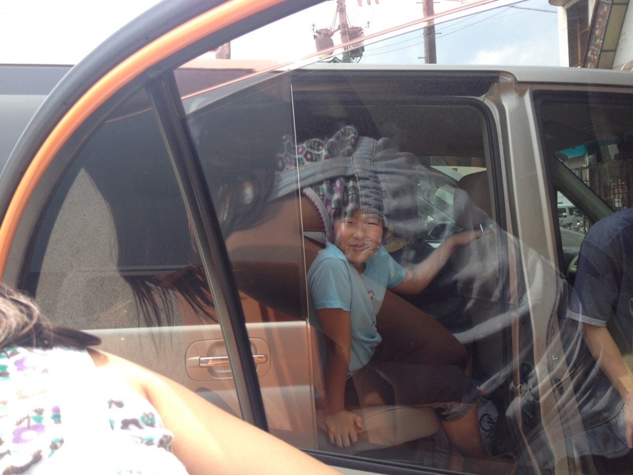 従兄弟同士でハイポーズ!久しぶりの再会。宮崎教会