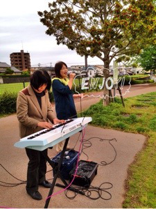 引っ越し先の近くの公園でみんなで路上ライブをしました。 熊本アンテオケ教会