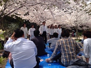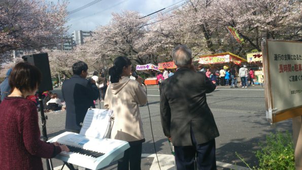 健軍の自衛隊通りの桜の中で、路上ライブをしました。 熊本は桜の名所がたくさんあります。花見客のかたから、沢山声をかけられました。 熊本アンテオケ教会