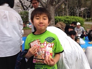 桜の下気持ち良く歌えました! ビンゴゲームで賞品もゲット!