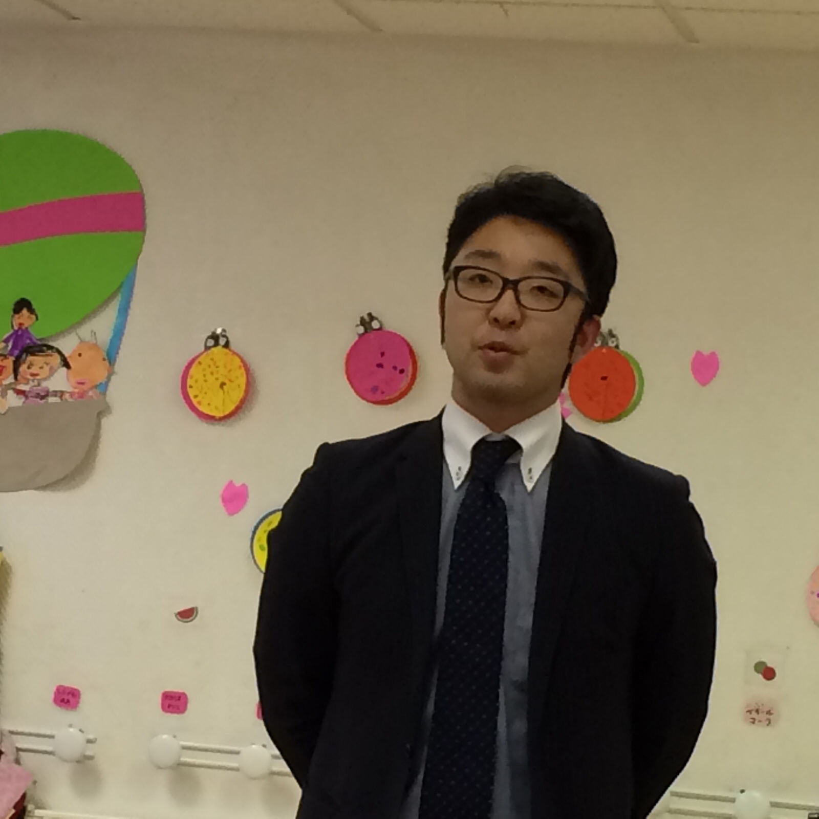 園児の作品の前で証するヨハネさん。幼稚園生の頃を想像しながら証を聞かせていただきました。 北アンテオケ教会