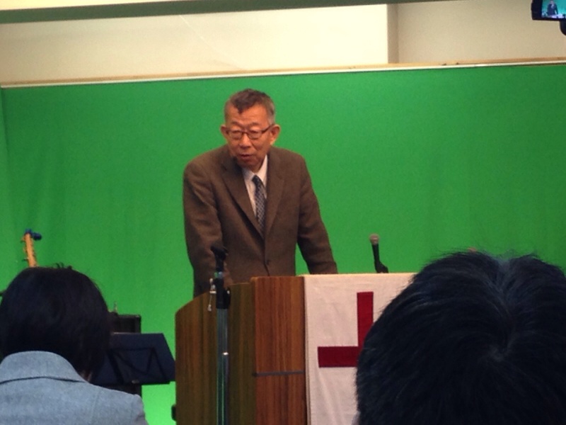 感謝会が始まりました。 まず、パウロ秋元さんが神様が教会にしてくださった数々の素晴らしいわざ、奇跡について語られ感謝をされています。