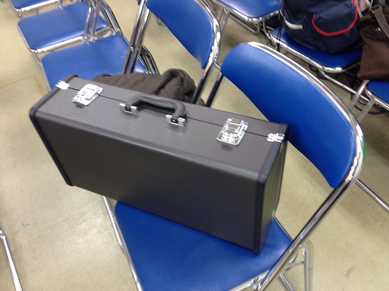教会会堂に、トランペットが置いてありました。クリちゃんゆみちゃんのらしいです〜東京Fluteエステル