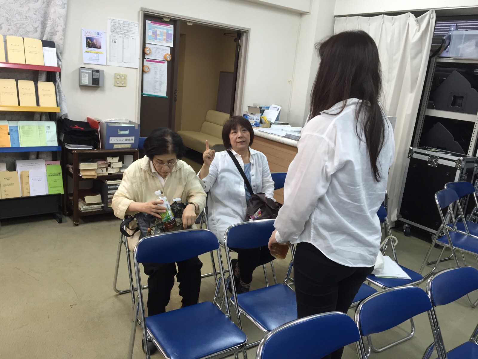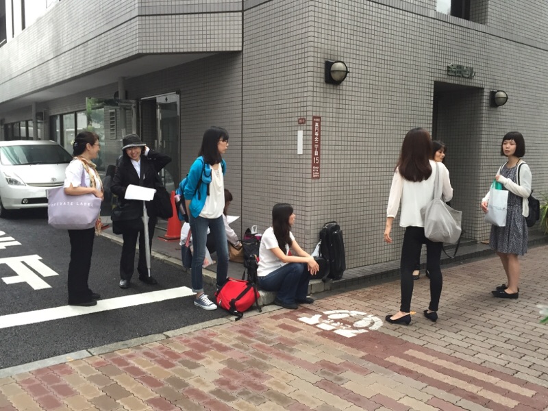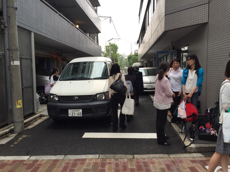 会堂前で待機、準備中のみなさん。エステル清水
