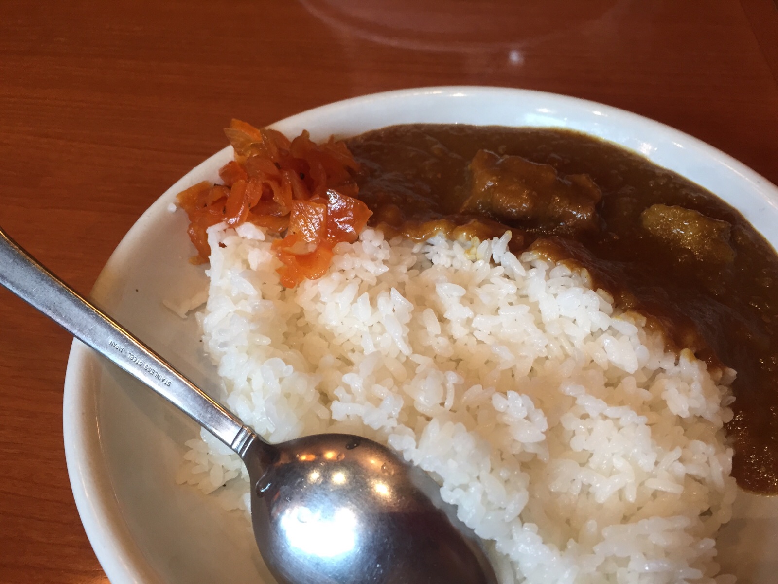 今日はポークカレーを食べました。500円ランチ!私の会社まわりでは貴重なお得ランチです。 Yui
